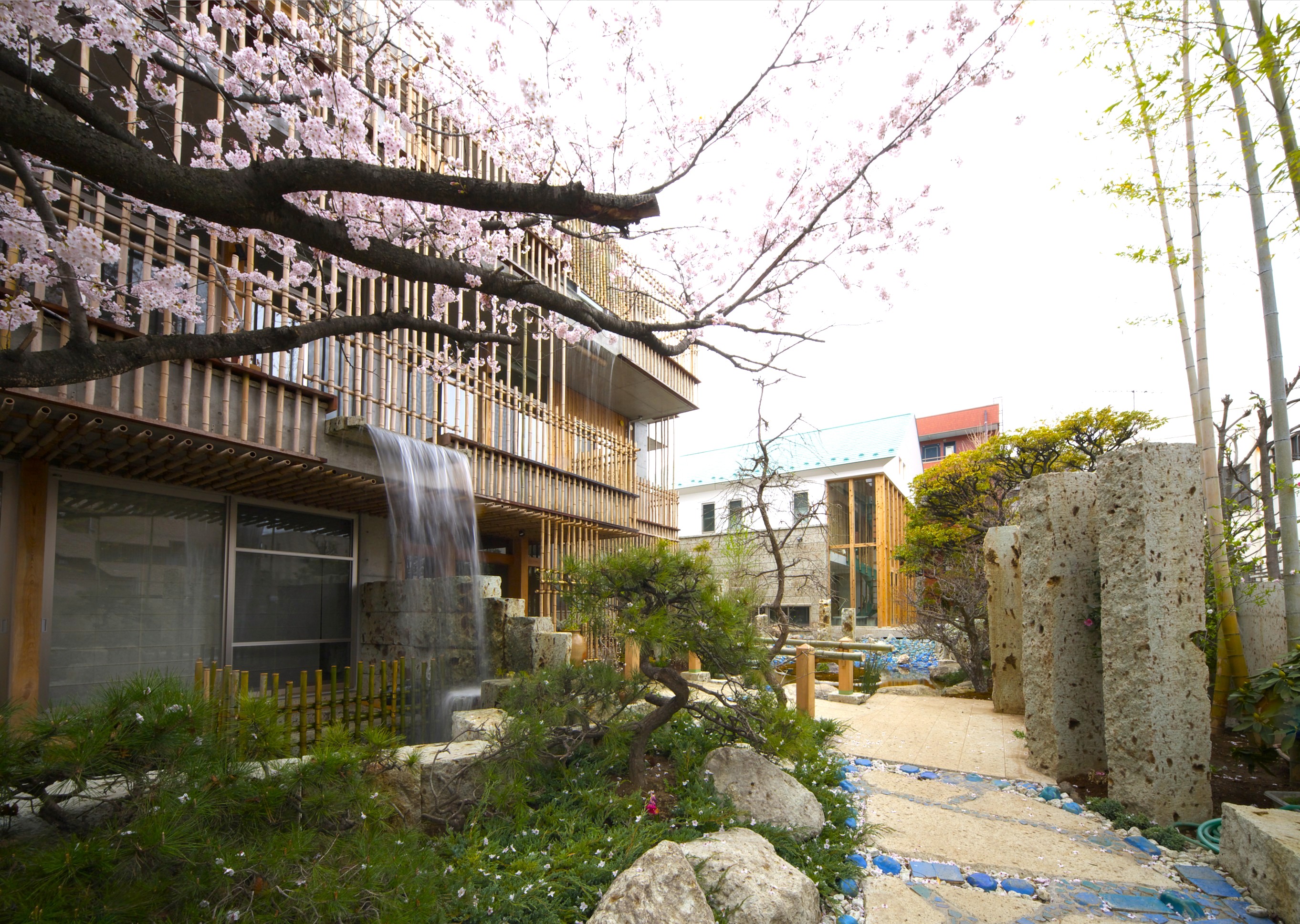 東館から眺める庭の桜と本館前の桜をどうぞお楽しみください。