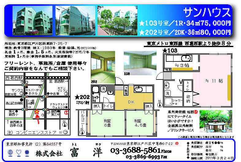 空室状況等、最新情報は電話(03-3688-5861)、メールにてお問合せください。